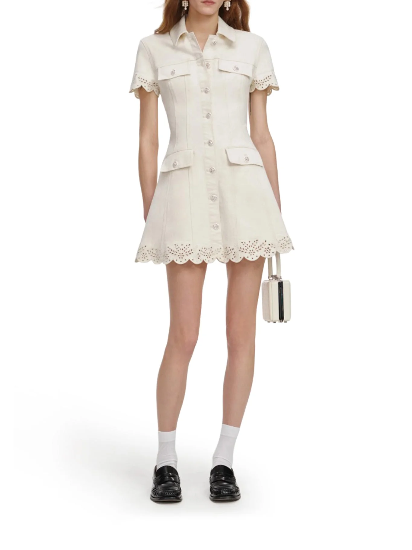 CREAM BRODERIE DENIM MINI DRESS