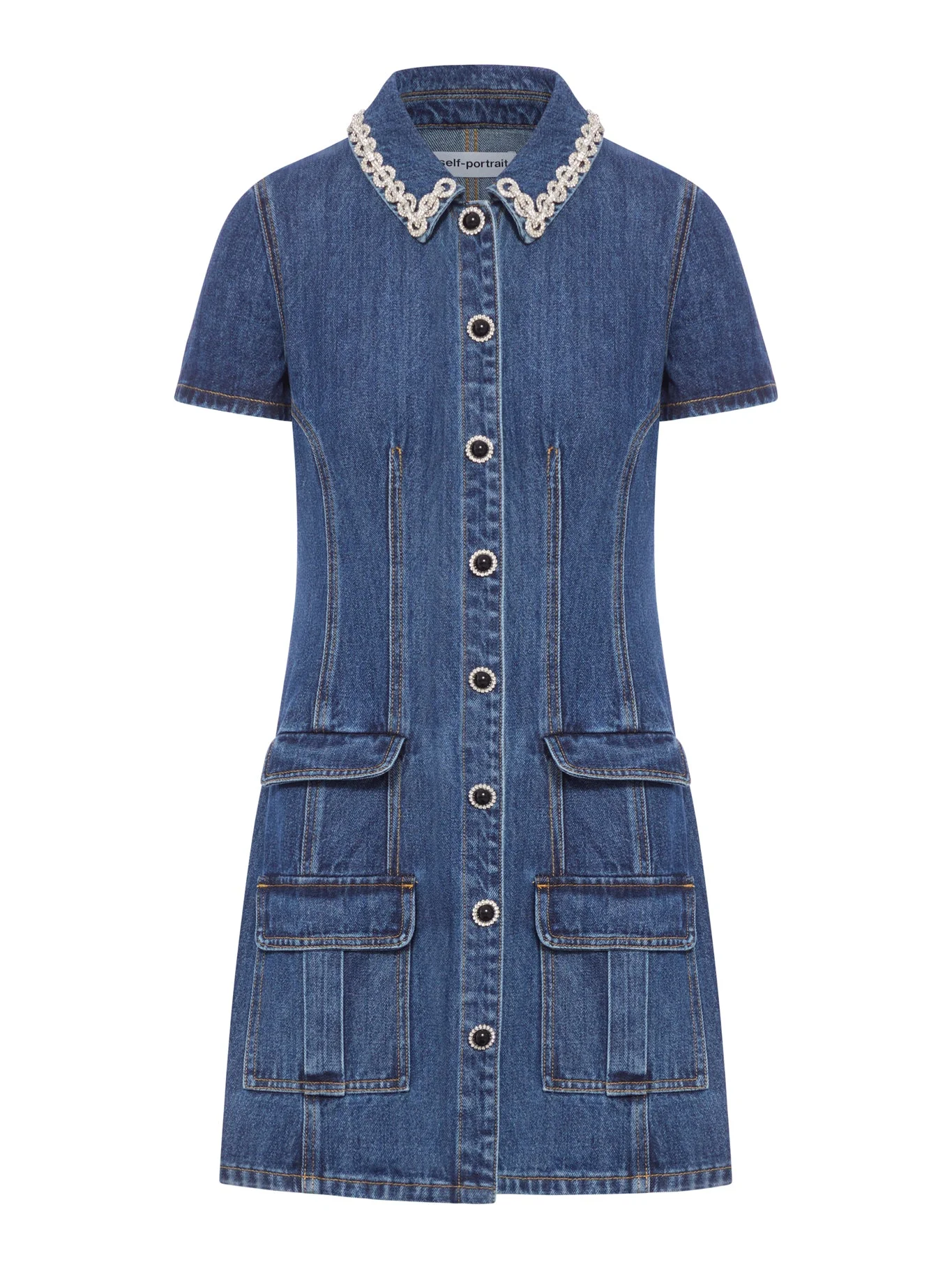 Denim Crystal Trim Collared Mini Dress