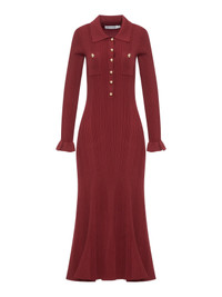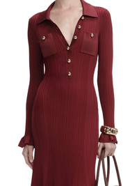 - Made of burgundy ribbed knit - Removable shoulder pads - Flared sleeves and a playful hem - Ruffled cuffs - Stretch fabric - Front fastening with gold buttons - Relaxed yet sculpted fit Made in China Composition: Viscose 50%Viscose 28%polyester 22%pa Color code: BURGUNDY AW25008MABU
