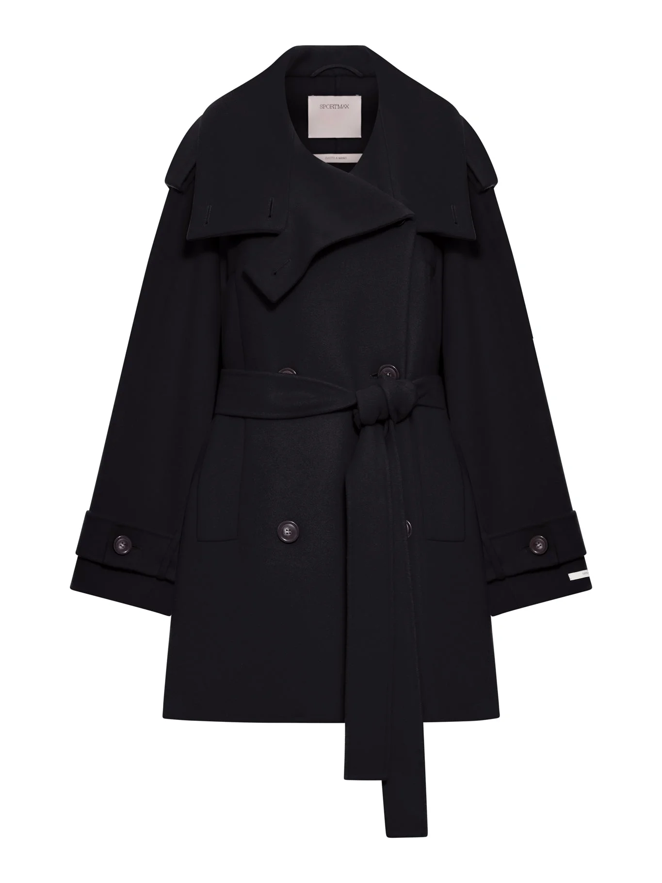 - Double-layer pure wool trench coat - Loose fit - Stand-up collar with double button - Side closure with exposed buttons - Belted waist - Wide welt pockets - Color: Black Made in Italy Composition: Wool 100% wool Color code: 013 BLACK 2522016063600