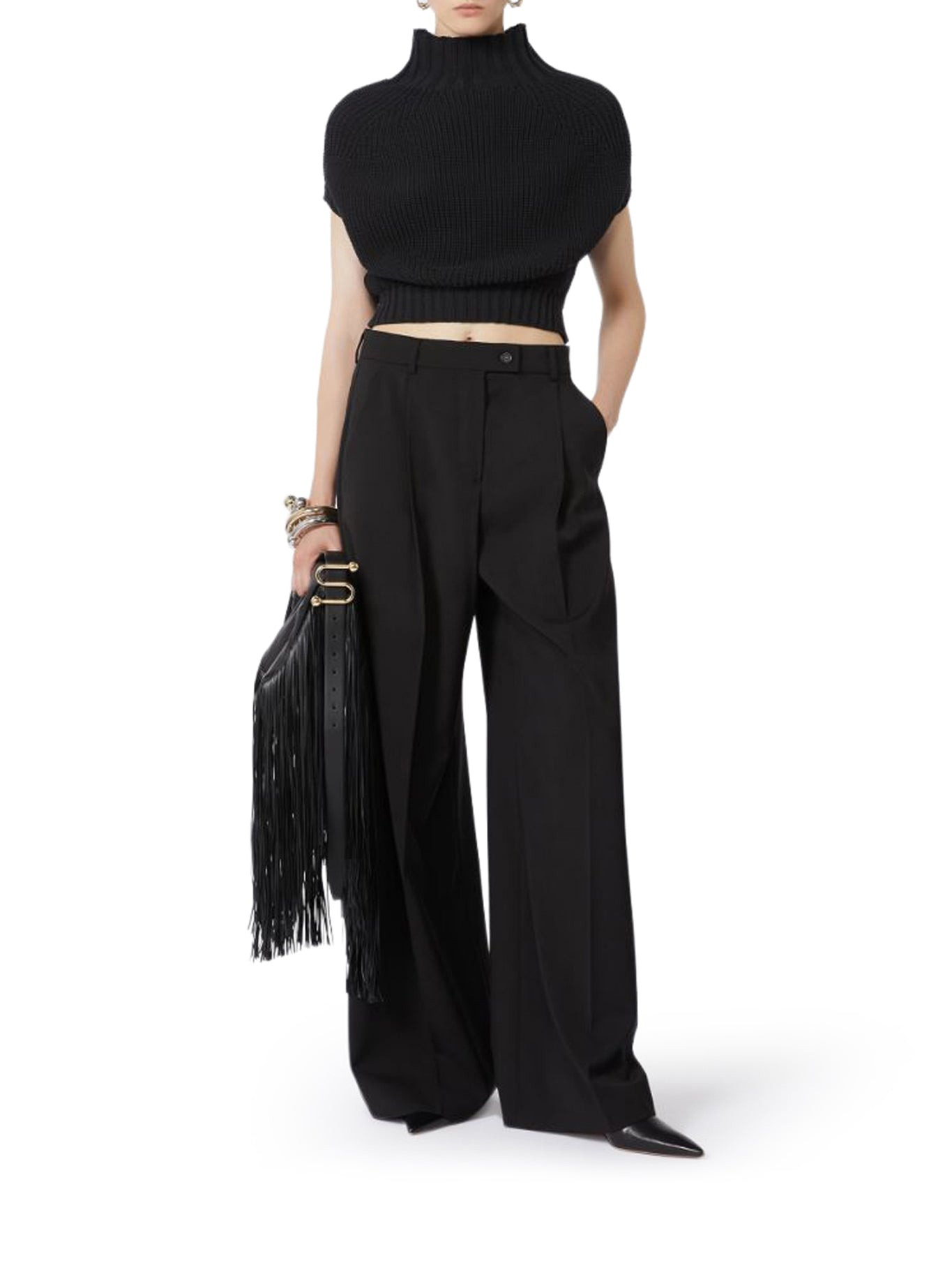 -Belt with belt loops -Zip and button closure -Pence on the front -Straight leg -Welt pockets on the back Made in Italy Composition: Wool 100% wool Color code: 004 BLACK 2522136021600
