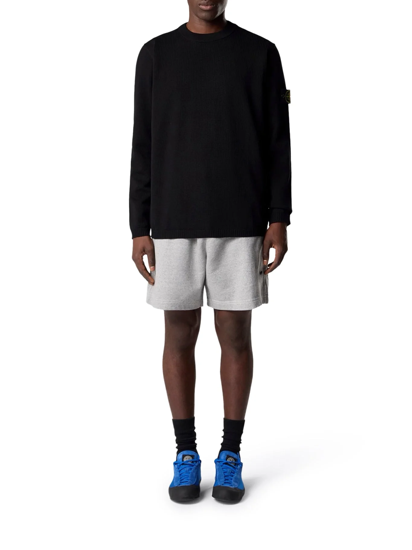 - Crew neck - Micro-stitch organic cotton - Purl-stitch band along the armholes - Long sleeves - Logo patch on the sleeve - Ribbed cuffs and hem - Loose fit - Gauge 14 - The model is wearing a size L and is 183 cm tall - Color: Black Made in Croatia Composition: Cotton 100% cotton Color code: V0029 BLACK L1S155100023S01B2