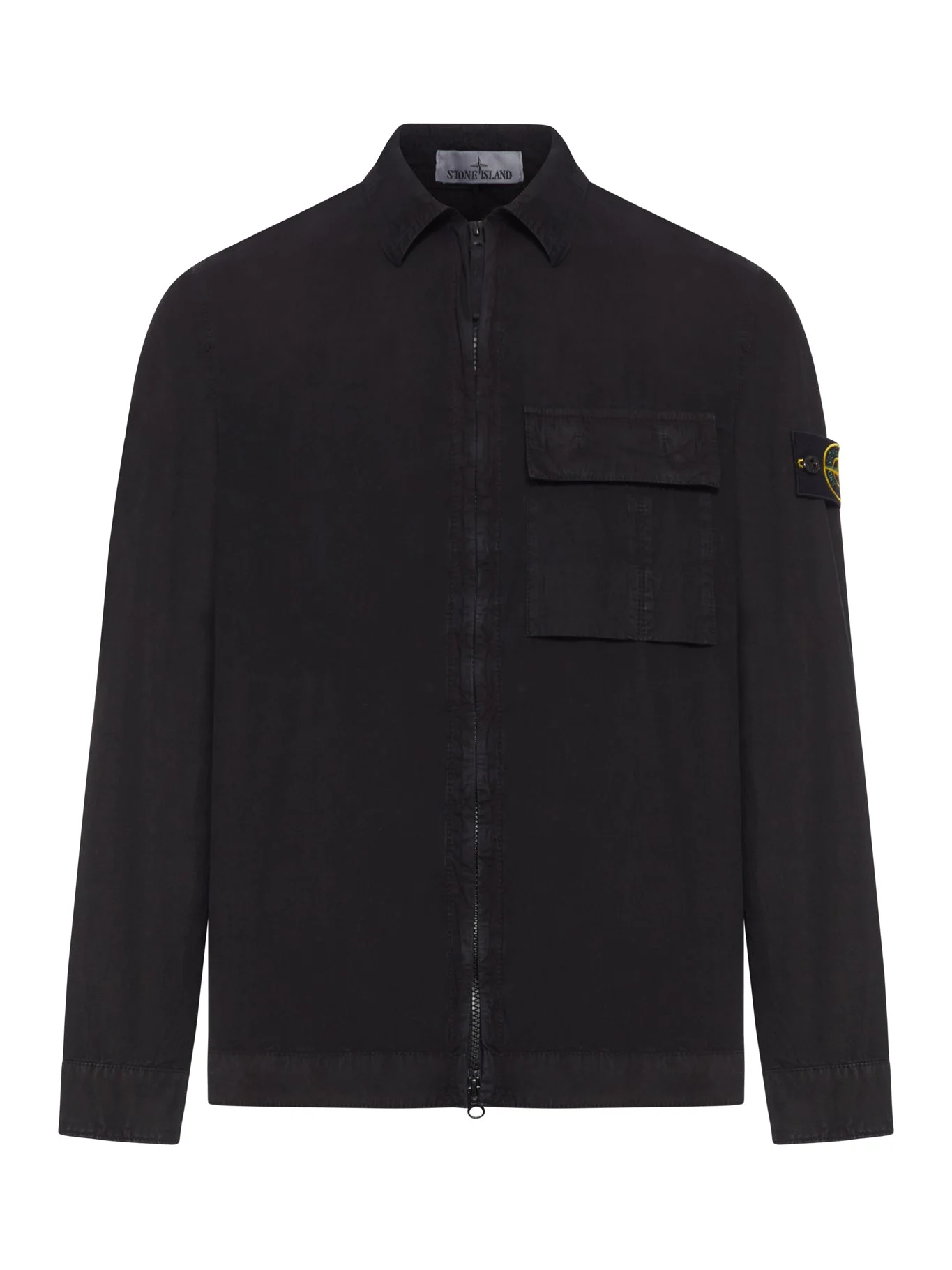- Organic cotton overshirt - Chest pocket with flap and buttons - Two-way zip closure - Snap cuffs - Stone Island badge on the left sleeve - Regular fit - Garment-dyed - Color: Black Made in Korea Composition: Cotton 100% Cotton Color code: V0129 BLACK L1S151200008S00WN