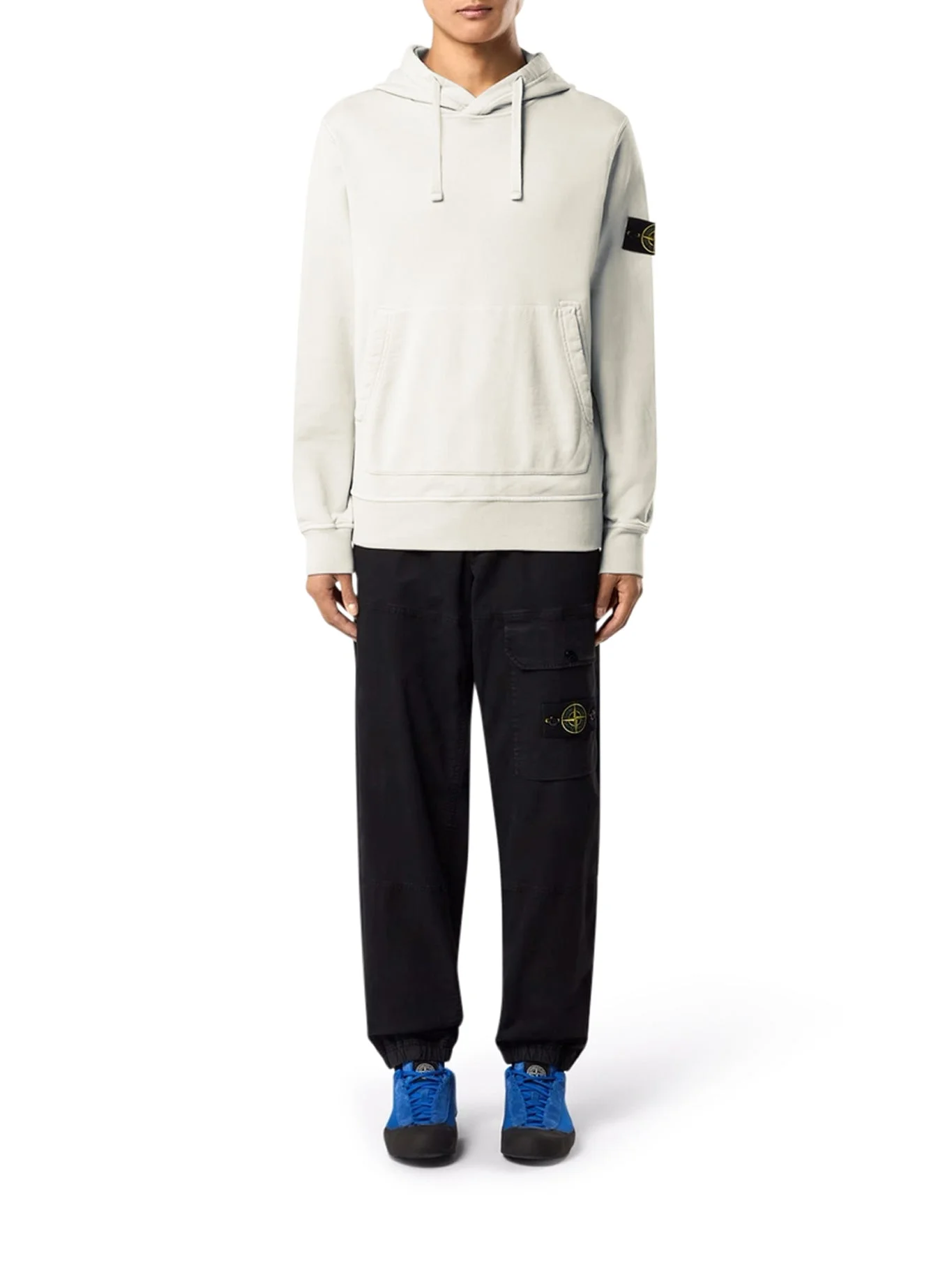 - Drawstring hood - Overlock stitching - Kangaroo pocket with slanted openings - Stone Island badge on the left sleeve - Lined panel under the back neckline - Elasticated ribbed cuffs and hem - Regular fit - Color: Ivory Made in Tunisia Composition: Cotton 100% cotton Color code: V0093 IVORY L1S156100062S0051