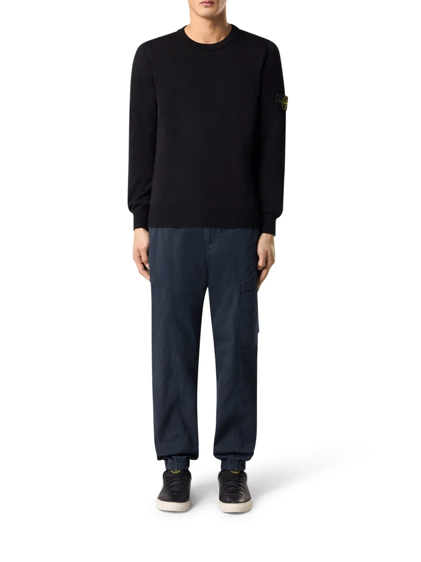 STONE ISLAND CREW NECK SWEATER WITH BADGE BLACK