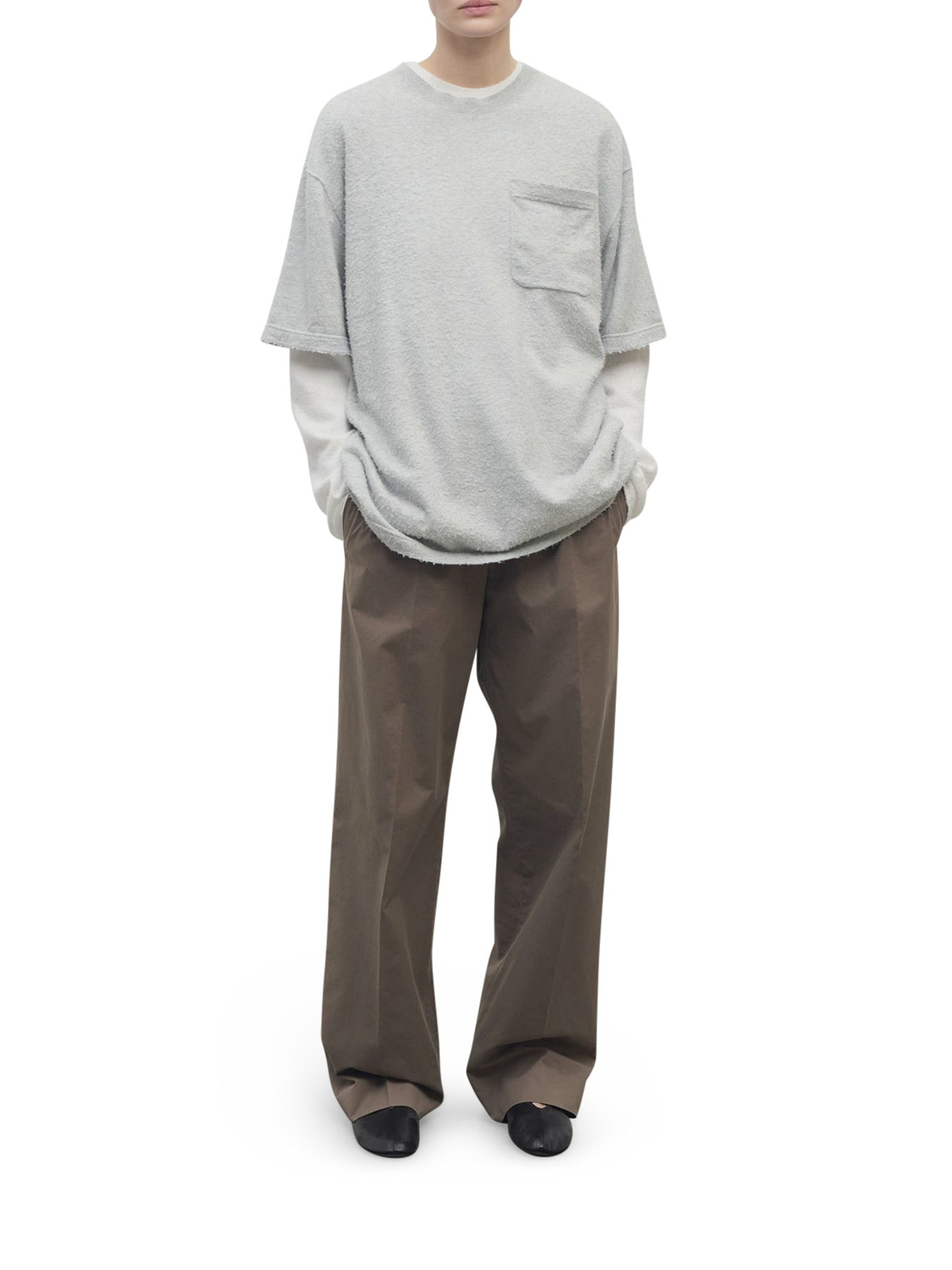 -Low-waisted tailored trousers -Soft Pima cotton -Straight leg -Double front pleats -Side welt pockets Made in Italy Composition: Cotton 100% cotton Color code: TAU TAUPE 8884W3897