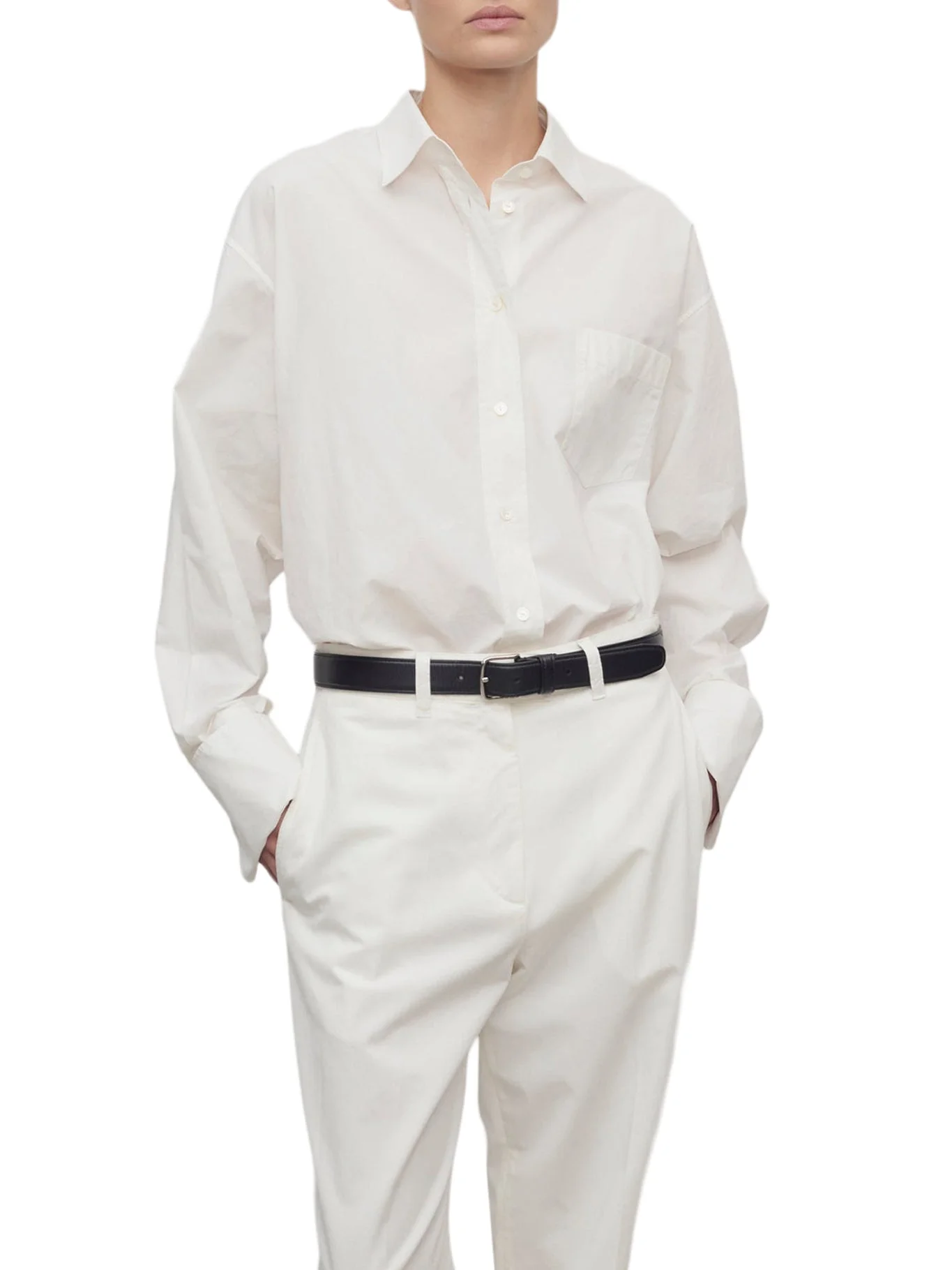 - Classic button-up shirt - Sandblasted cotton poplin - Patch chest pocket - Extended cuffs - Exposed front placket with mother-of-pearl buttons - 100% cotton - Color: White Made in Italy Composition: Cotton 100% Cotton Color code: WHT WHITE 10204W4075