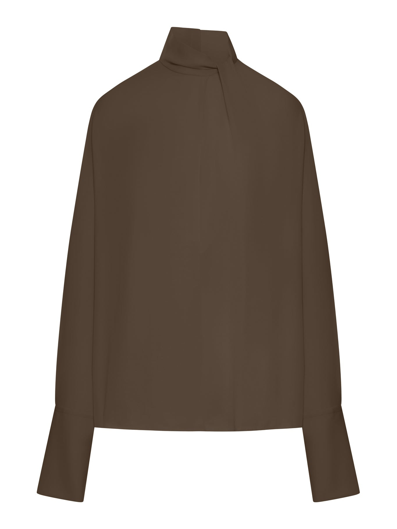 - High neck - Back opening with buttons and hooks - Long sleeves - High cuffs with buttons - Silk georgette - Paneled construction - Straight hem Made in Italy Composition: Silk 100% Silk Color code: KB349 DESERT PALM CA3319FAX1507