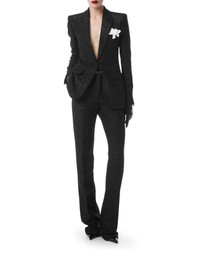 SEQUINED WOOL BLEND CREPE TAILORED STRAIGHT PANTS