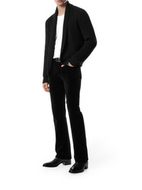 -Shawl collar -Double breasted placket -Ribbed wool and silk -Elastic cuffs and hem -Black Made in Italy Composition: Wool 100% wool Color code: LB999 BLACK KLL012YMW094