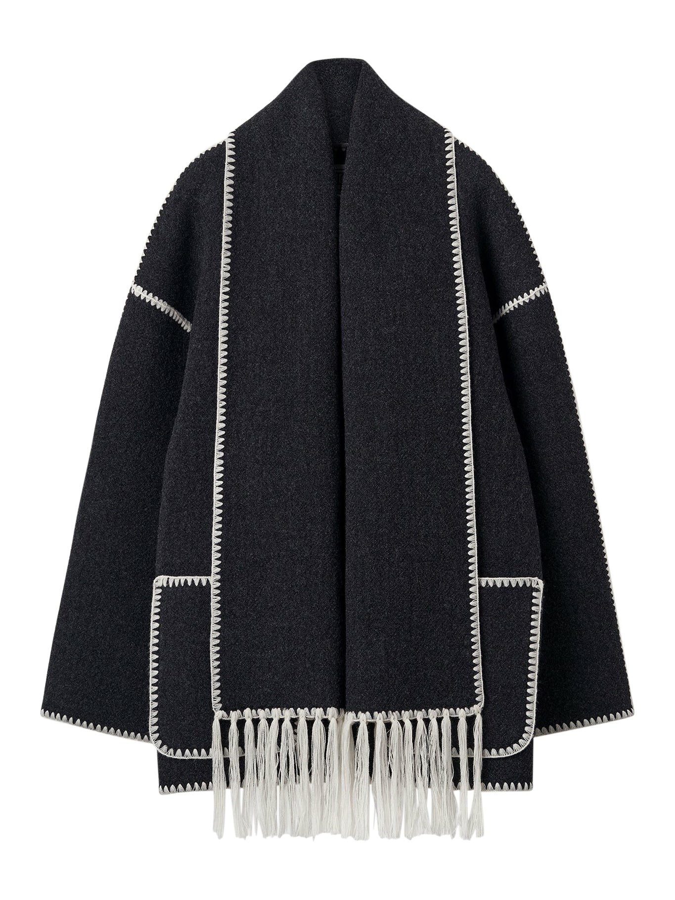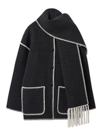 -Attached scarf, button front -Spacious pockets -Button front -Patch pockets Made in China Composition: Wool 68% Wool 20% Wool Recycled 12% Polyester Recycled Color code: 083 DARK GREY MELANGE 244WRO918FB0292