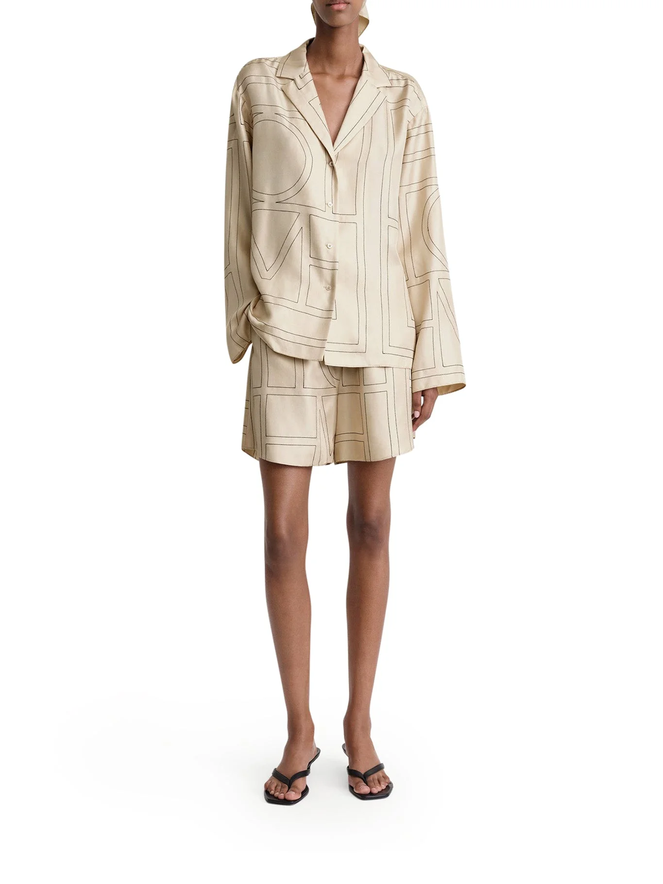 - silk shorts with geometric print by TOTEME - geometric print - elasticated waistband - straight leg - thigh length - straight hem Made in China Composition: Silk 100% Silk Color code: 926 IVORY MONOGRAM 223226707
