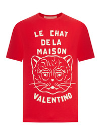 - Valentino cotton T-Shirt with Chat de la Maison print - Regular fit - Chat de la Maison print on the chest - Length: 72 cm from the back of the neck in size L - The model is 187 cm tall and wears a size L - Color: Raspberry/Butter Made in Italy Composition: Cotton 100% cotton Color code: BR3 RASPBERRY BUTTER 7V3MG16PB32
