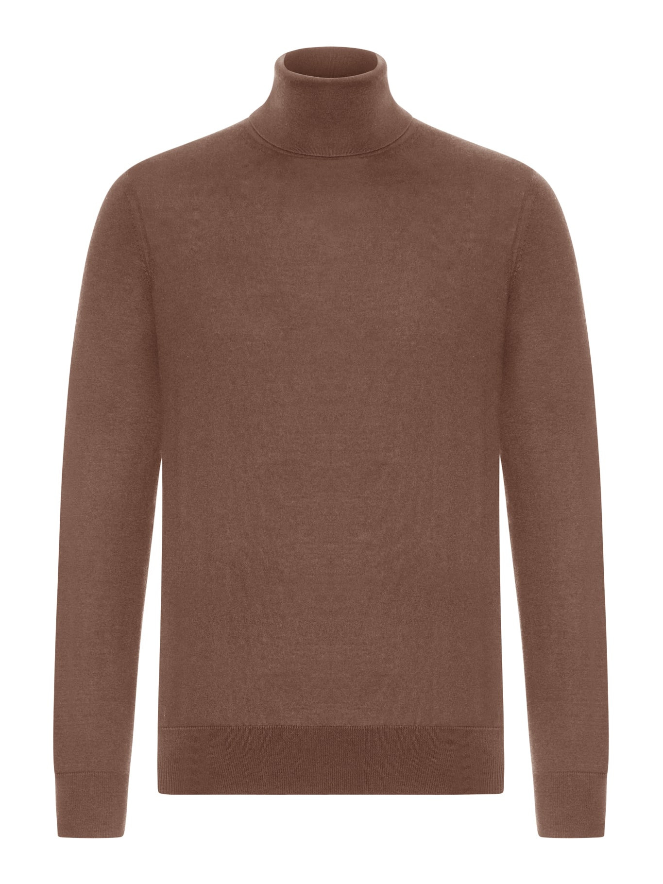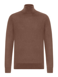 - High neck - Long sleeves - Ribbed cuffs - Straight ribbed hem - Regular fit - Color: Medium Brown Made in Italy Composition: Cashmere 70% Cascmere 30% silk Color code: M96 MEDIUM BROWN UGJ00A2120