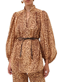 -V-neck -Puffball sleeves -Elasticized cuffs -Removable leather belt -100% cotton fabric -Long sleeves -High collar -Regular Made in Sri Lanka Composition: Cotton 100% Cotton Color code: TNLP TAN LEOPARD 3203TSS255