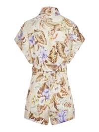 Coco belted printed linen playsuit Beige