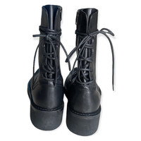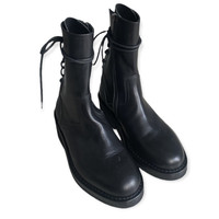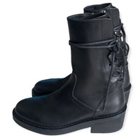 Black vitello back lace boots