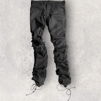 Waist 16.5” Rise 10” Thigh 11” Total Length 59” Inseam 49.5” Leg opening 7.5”