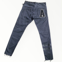SS18 Leather Waist Wool Vasity Patch Jeans