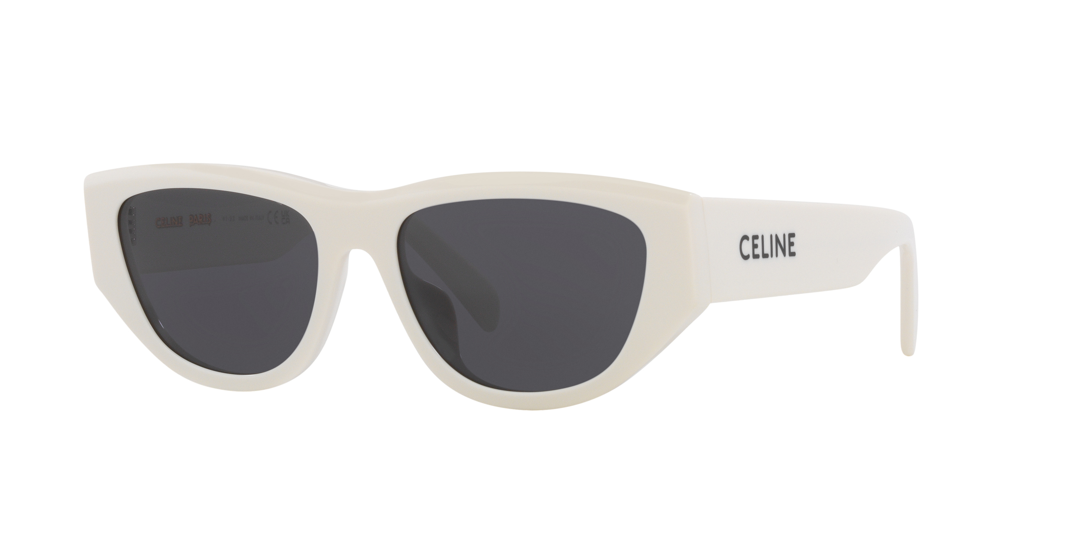 Elevate your style with Celine MONOCHROMS CL40278U sunglasses, where iconic cat eye shapes meet contemporary sophistication. The unique blend of past and present is embodied in these ivory-colored frames crafted from premium quality acetate material. Featuring grey lenses that offer optimal protection against harmful UV rays, this exquisite pair effortlessly blends timeless elegance with modern flair for a truly captivating aesthetic experience. PRODUCT INFORMATION STYLE Monochroms Cl40278U MODEL CODE CL000454 3100L1 55-17 MADE IN Italy FRAME DETAILS COLOR Beige MATERIAL Acetate SQUARE Cat Eye LENS DETAILS COLOR Grey MATERIAL Polyamide TECHNOLOGY Grey LENS PROTECTION INDEX 3N