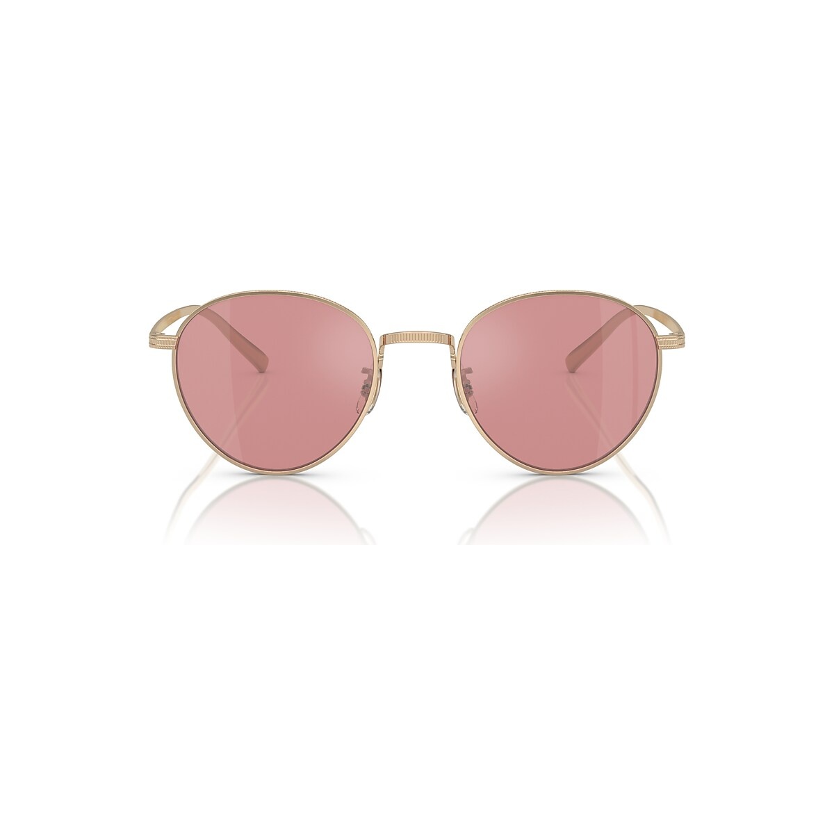 Oliver Peoples Rhydian is a unique model that redefines the boundaries of sunglass design. Crafted from gold titanium with mirror magenta photochromic lenses, these phantos shades offer not only style but also functionality, as they transition seamlessly from day to night. The perfect companion for all your outdoor adventures, this resilient and flexible frame will keep you looking sharp wherever life takes you. PRODUCT INFORMATION STYLE OV1336ST Rhydian MODEL CODE OV1336ST 50353E 49-20 MADE IN Japan FRAME DETAILS COLOR Gold MATERIAL Titanium SQUARE Phantos LENS DETAILS COLOR Magenta Photochromic MATERIAL Crystal TECHNOLOGY Violet LENS PROTECTION INDEX 3F