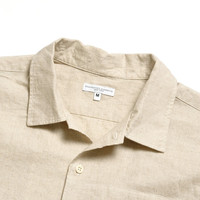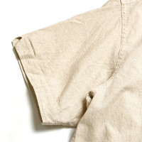 This brand's standard camp shirt is made of cotton linen fabric. Classic design with a relaxed open collar and box silhouette. Two patch pockets on the front are attached diagonally. This short-sleeved shirt is reminiscent of casual resort wear. 【Product Details】 - Country of Origin: USA - Color: Natural - Size: S, M, L - Material: 50% Cotton / 50% Linen - Model Wearing Size: S (172cm 56kg)