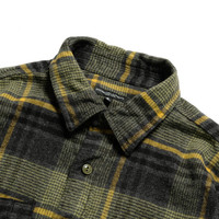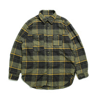 This work shirt is a standard item from "ENGINEERED GARMENTS" and is popular every season. It features asymmetrical chest pockets which are a mountain-shaped pocket and a larger pocket with a pen holder, reinforced fabric on the elbows, cat-eye buttons, and other details found on vintage shirts. Single, double, and triple stitches are skillfully used in different parts of the shirt, and the attention to detail can be seen in the shirt. This long-sleeved work shirt is made of plaid flannel with a subdued color tone suitable for fall and winter. 【Product Details】 - Country of Origin: USA - Color: Yellow/Gray(YL) , Orange/Red(OR) - Size: XS, S, M - Material: 100% Cotton - Model Wearing Size: XS (172cm 56kg)