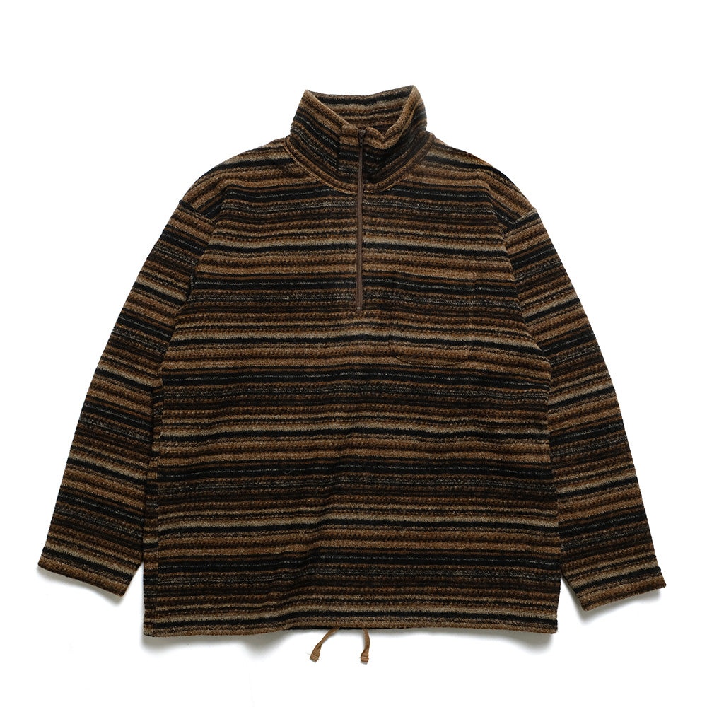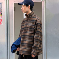 This pullover knit sweater is designed with a stand-up collar and half-zip front. Drawcord at the hem allows for silhouette adjustment. Pocket on left chest. Made of striped knit fabric with a Fair Isle pattern. 【Product Details】 - Country of Origin: USA - Color: Brown(BR) - Size: S, M - Main: 65% Polyester / 35% Wool - Other Fabric: 51% Polyester / 49% Cotton - Model Wearing Size: M (172cm 56kg)