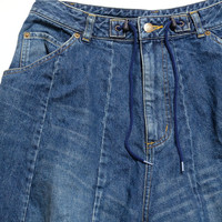 A new model of the popular H.D. PANT has been released with a wider hem width and arranged as baggy pants. These pants further emphasize the volume of the unique and distinctive silhouette created by dart processing. The orthodox 12 oz. denim material, which can be worn year-round, has been washed for a vintage look. 【Product Details】 - Country of Origin: Japan - Color: Indigo / Black - Size: XS, S, M, L, XL - Material: 100% Cotton - Model Wearing Size: XS (169cm 56kg)