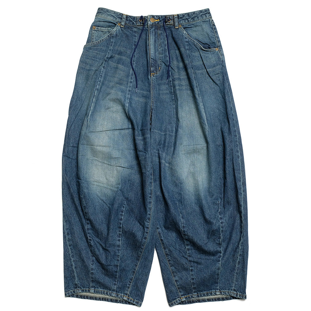 The H.D. PANT is a popular item with a unique silhouette with a large bulge at the front due to darts at the waist and hem. These pants incorporate the design of five-pocket jeans, based on the H.D.PANT. Its relaxed silhouette and open, stress-free comfort are also appealing. Made of a classic 12-oz denim fabric suitable for year-round wear, it features a vintage-inspired wash. 【Product Details】 - Country of Origin: Japan - Color: Indigo - Size: XS, S, M, L, XL - Material: 100% Cotton - Model Wearing Size: - (-cm -kg)