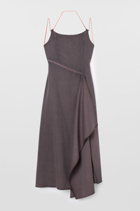 Long panel dress in plum garment-dyed wool featuring adjustable coulisse. 100%WO Materials from Italy Made in Italy Ai is wearing a size S. Model measures: Height: 177 cm Chest: 82 cm Waist: 64 cm Hips: 92 cm