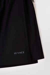 Elastic shorts with panel skirt on top in black technical fabric featuring two-pockets styling with SUNNEI logo silicon puller and box print on front. 60%NY 22%EL Materials from Italy Made in Italy Isabella is wearing a size S. Model measures: Height: 180cm Chest: 82cm Waist: 63cm Hips: 89cm Shoe: 40 Isabella is wearing a size S. Model measures: Height: 180cm Chest: 82cm Waist: 63cm Hips: 89cm Shoe: 40
