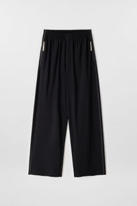 Elastic straight-fit pants in black technical fabric featuring two-pockets styling and one back pocket with SUNNEI logo silicon puller and box print on back. 60%NY 22%EL Materials from Italy Made in Portugal