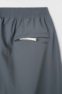 Elastic straight-fit pants in grey technical and water resistant double-stretch fabric featuring heattaped finishing and metal high quality zip with SUNNEI branded palladium puller and silicon puller. 85%PA 15%EA Materials from Portugal Made in Portugal