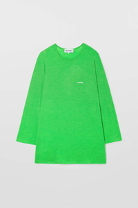 Mega over longsleeve t-shirt featuring bright green light wool jersey material with printed SUNNEI logo on chest. 71%WO 24%PA 5%EA Materials from Portugal Made in Portugal