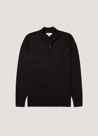 A sports-inspired half-zip jumper, in an Italian-spun extra-fine merino wool. Knitted on traditional Bentley frame knitting machines from Loughborough, England, it is beautifully lightweight, making it a perfect option for layering all year round. Product Code: MJUM8116-BKAA Fabric & Care - 100% Extra-Fine Merino Wool - Non-mulesed - Total Easy Care (TEC) treatment applied for machine washability and shrink resistance - Gentle wash at 30°C - Do not tumble dry - Dry cleanable - Made in Portugal Size & Fit - Regular fit - Model is 6'1", chest 38" and wears a size M