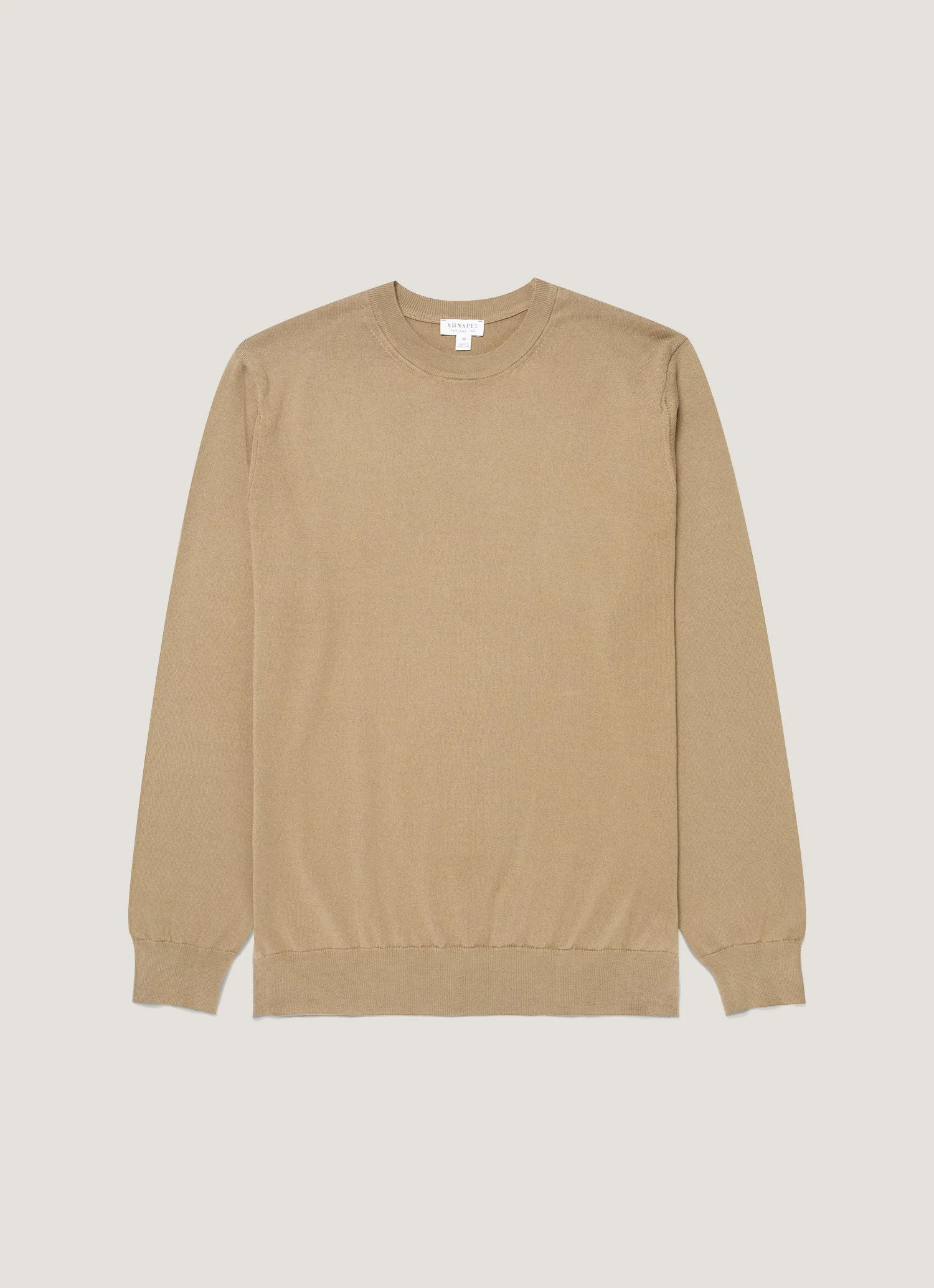 A refined everyday layer, this lightweight jumper is crafted from Italian-spun long-staple Egyptian cotton and is garment-dyed for a soft, broken-in feel. Knitted on traditional Bentley machines for a smooth, clean finish, it has a regular fit, fine ribbed trims and minimal detailing. An elevated take on the essential cotton knit. Product Code: MJUM8314-WHDC Fabric & Care - 100% Cotton - Gentle wash at 30°C - Wash dark colours separately - Do not tumble dry - Dry cleanable - Made in Portugal Size & Fit - Regular fit - Model is 6'1", chest 36" and wears a size M