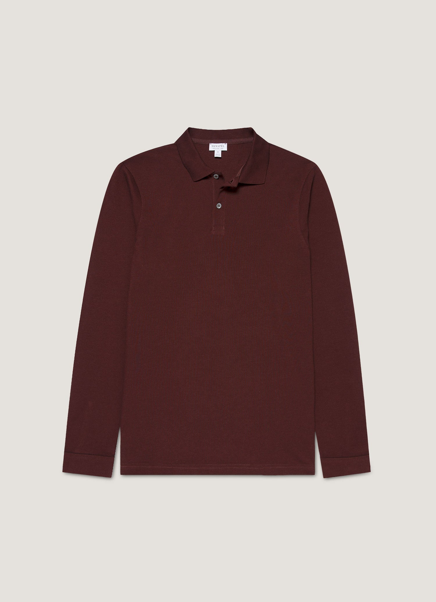 Crafted in luxurious, lightweight Californian Supima cotton, this is a long sleeve version of our classic pique polo. Durable and exceptionally soft against the skin, it's designed for a slim fit, featuring a ribbed collar, shell buttons, and a tailored cuff. It has a smart, sophisticated silhouette. Product Code: MPOL1065-RDEL Fabric & Care - 100% Supima Cotton - Cotton is fully traceable and sustainably sourced from California - Cotton is extra-long staple for durability and comfort - Gentle wash at 30°C with similar colours - Shell buttons - Do not tumble dry - Do not dry clean - Made in Portugal Size & Fit - Slim fit - Cut with the same fit as the Riviera Polo Shirt but the Supima cotton fabric has more drape, so it will feel more relaxed by comparison - Model is 6'2", chest 38" and wears a size M