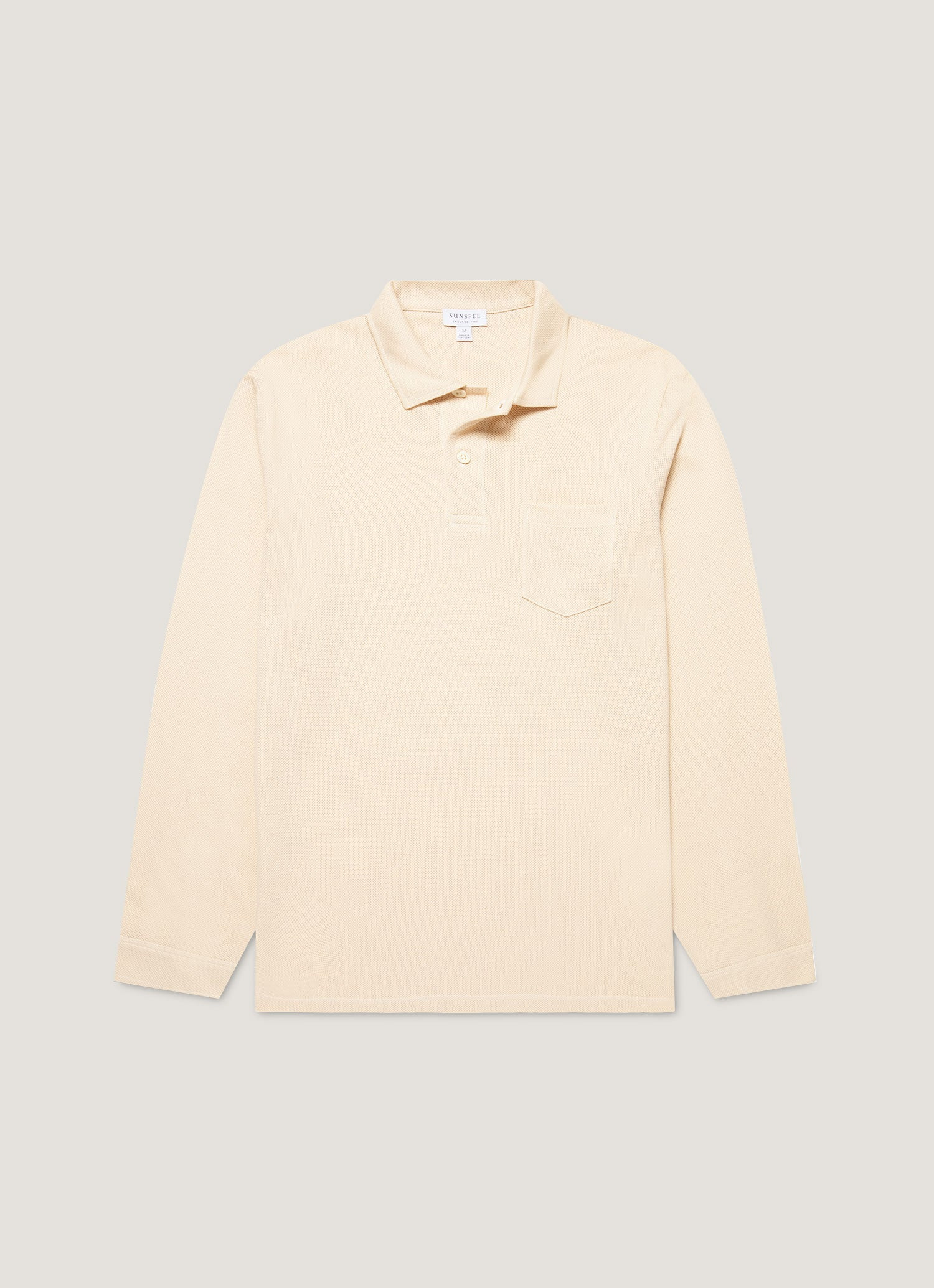 A long-sleeved version of our iconic Riviera Polo Shirt. Crafted from the finest extra-long staple Supima cotton, traceable to its Californian farm of origin. Lightweight, breathable and exceptionally comfortable, the unique mesh fabric and style were first developed by Sunspel in the 1950s for the French Riviera, and later tailored for Daniel Craig’s debut as James Bond in Casino Royale. Cut to the same slim fit as the original. Product Code: MPOL1031-NUAB Fabric & Care - 100% Supima Cotton - Cotton is fully traceable and sustainably sourced from California - Cotton is extra-long staple for durability and comfort - Gentle wash at 30°C with similar colours - Do not tumble dry - Dry cleanable - Made in Portugal Size & Fit - Slim fit - Model is 6'3", chest 36" and wears a size M