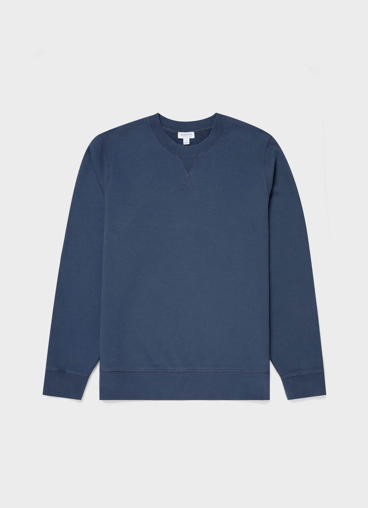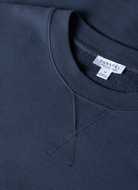 A modern take on the classic athletic sweatshirt. Introduced by former Sunspel creative director Jonathan Anderson, it has a neat fit and refined sweatshirt detailing, with a V-stitch insert and rib cuffs. Made from an exceptionally soft cotton loopback fabric, its internal loop stitch is specially designed to be warm and insulating. The contemporary cut makes it a highly versatile piece that can be worn as easily with a jacket as it can with matching sweatpants. Product Code: MSWE1516-BUUA Fabric & Care - Main: 100% Cotton - Ribs: 95% Cotton, 5% Elastane - Gentle wash at 30°C - Do not tumble dry - Do not dry clean - Made in Portugal Size & Fit - Click here to view size chart - Fits true to size - take your normal size - Regular Fit - Model is 6'1" and wears a size Medium