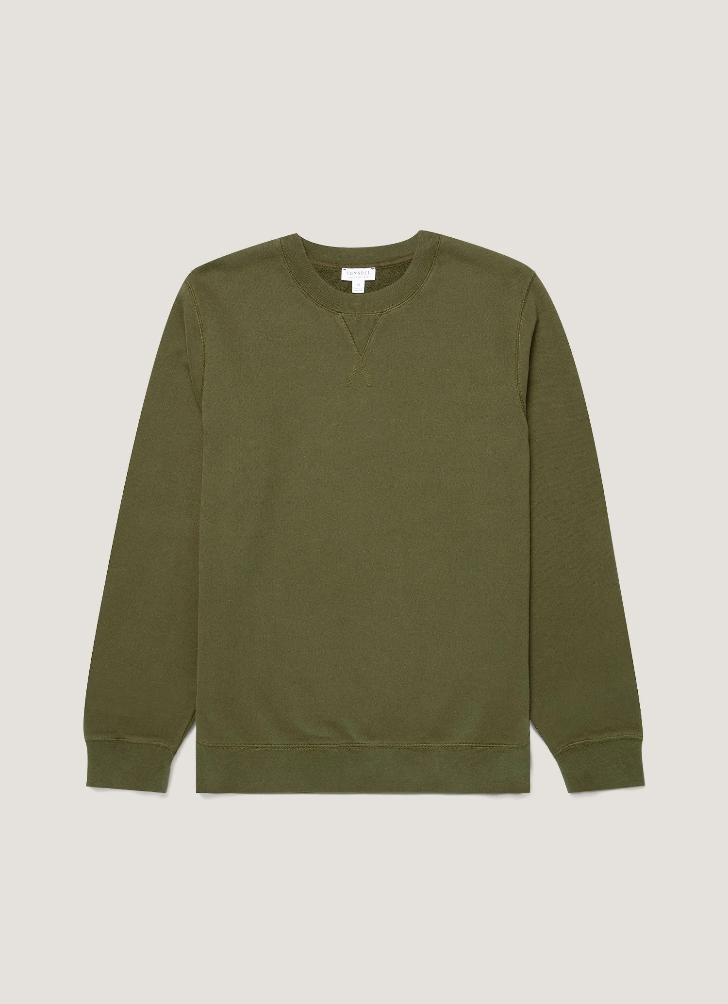 Worn by Brad Pitt in F1, the Loopback Sweatshirt is a modern icon of understated style. Originally introduced by former Sunspel creative director Jonathan Anderson, it reimagines the classic athletic sweatshirt with a neat fit and refined detailing. Crafted from exceptionally soft cotton loopback fabric, its internal loop stitch is specially designed for warmth and insulation. Featuring a V-stitch insert and rib cuffs, it is highly versatile – perfect with a jacket or paired with matching sweatpants. Product Code: MSWE1516-GNIZ Fabric & Care - Main: 100% Cotton - Ribs: 95% Cotton, 5% Elastane - Gentle wash at 30°C - Do not tumble dry - Do not dry clean - Made in Portugal Size & Fit - Regular fit - Model is 6'1", chest 36" and wears a size M