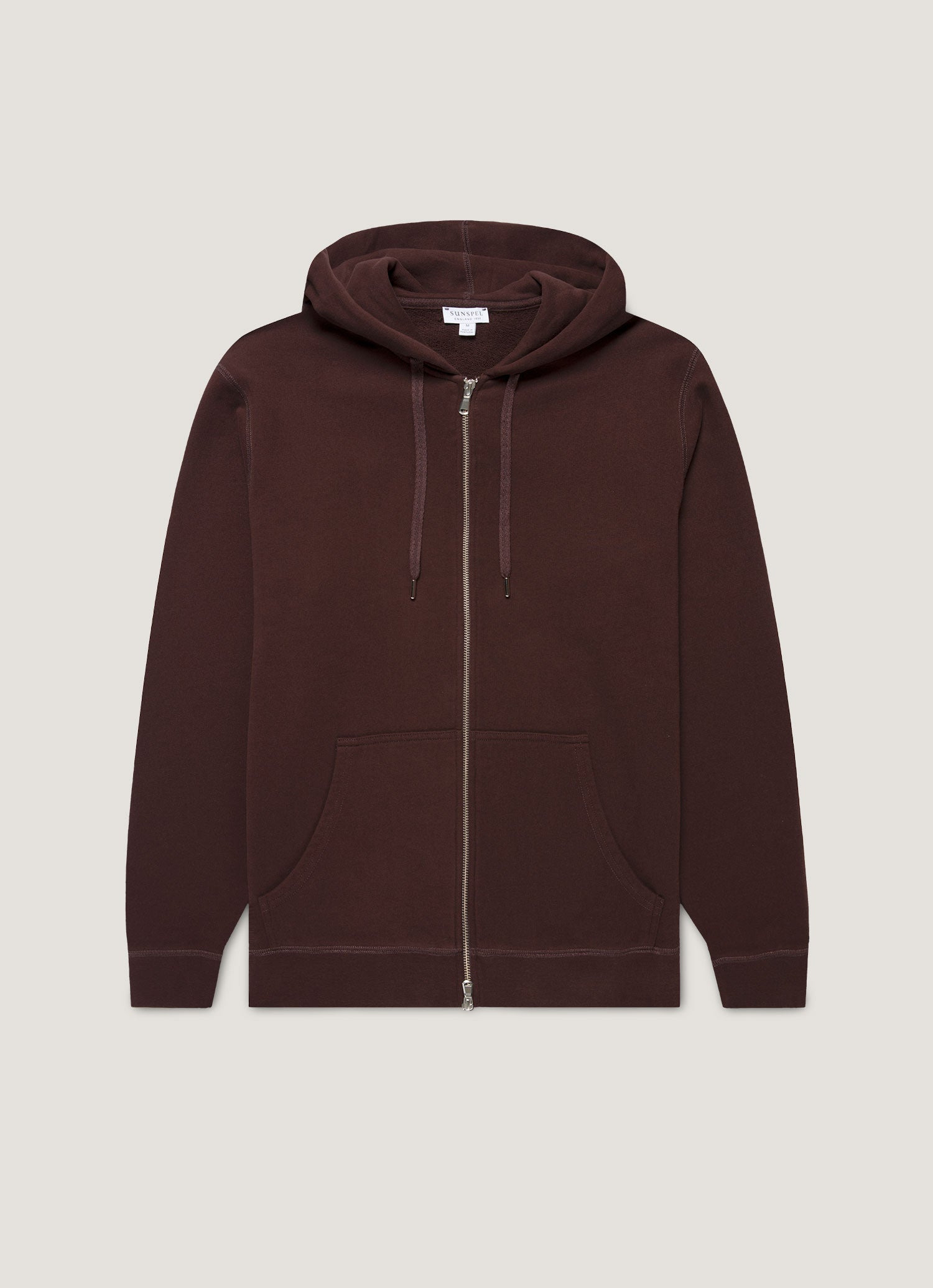 Part of our matching track set, the Loopback Hoodie features a classic fit, ribbed cuffs, and a zip closure. Originally developed for sportswear, the loopback fabric was designed to wick moisture from the body. Today, we use it to trap warm air against the skin, creating a comfortable and insulating layer. Product Code: MHOD1517-BRGD Fabric & Care - Main: 100% Cotton - Ribs: 95% Cotton, 5% Elastane - Gentle wash at 30°C - Do not tumble dry - Do not dry clean - Made in Portugal Size & Fit - Regular fit - Model is 6'2", chest 38" and wears a size M