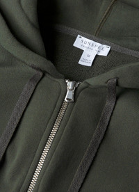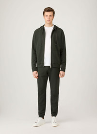 Part of our matching track set, the Loopback Hoodie features a classic fit, ribbed cuffs, and a zip closure. Originally developed for sportswear, the loopback fabric was designed to wick moisture from the body. Today, we use it to trap warm air against the skin, creating a comfortable and insulating layer. Product Code: MHOD1517-GNIN Fabric & Care - Main: 100% Cotton - Ribs: 95% Cotton, 5% Elastane - Gentle wash at 30°C - Do not tumble dry - Do not dry clean - Made in Portugal Size & Fit - Regular fit - Model is 6'1", chest 36" and wears a size M