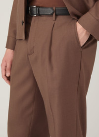 A smart, pleated trouser crafted from an Italian-woven extra-fine virgin wool twill. Designed for softness and warmth, with a regular fit, tapered leg and internal tailored waistband with notch detailing. Pair with the matching jacket for a contemporary set. Product Code: MTRS3122-BRDB Fabric & Care - 100% Wool - Horn buttons - Dry clean only - Made in Portugal Size & Fit - Regular fit - Pleat front - Tapered leg - Tailored waist - Model is 6'2" and wears a size 32