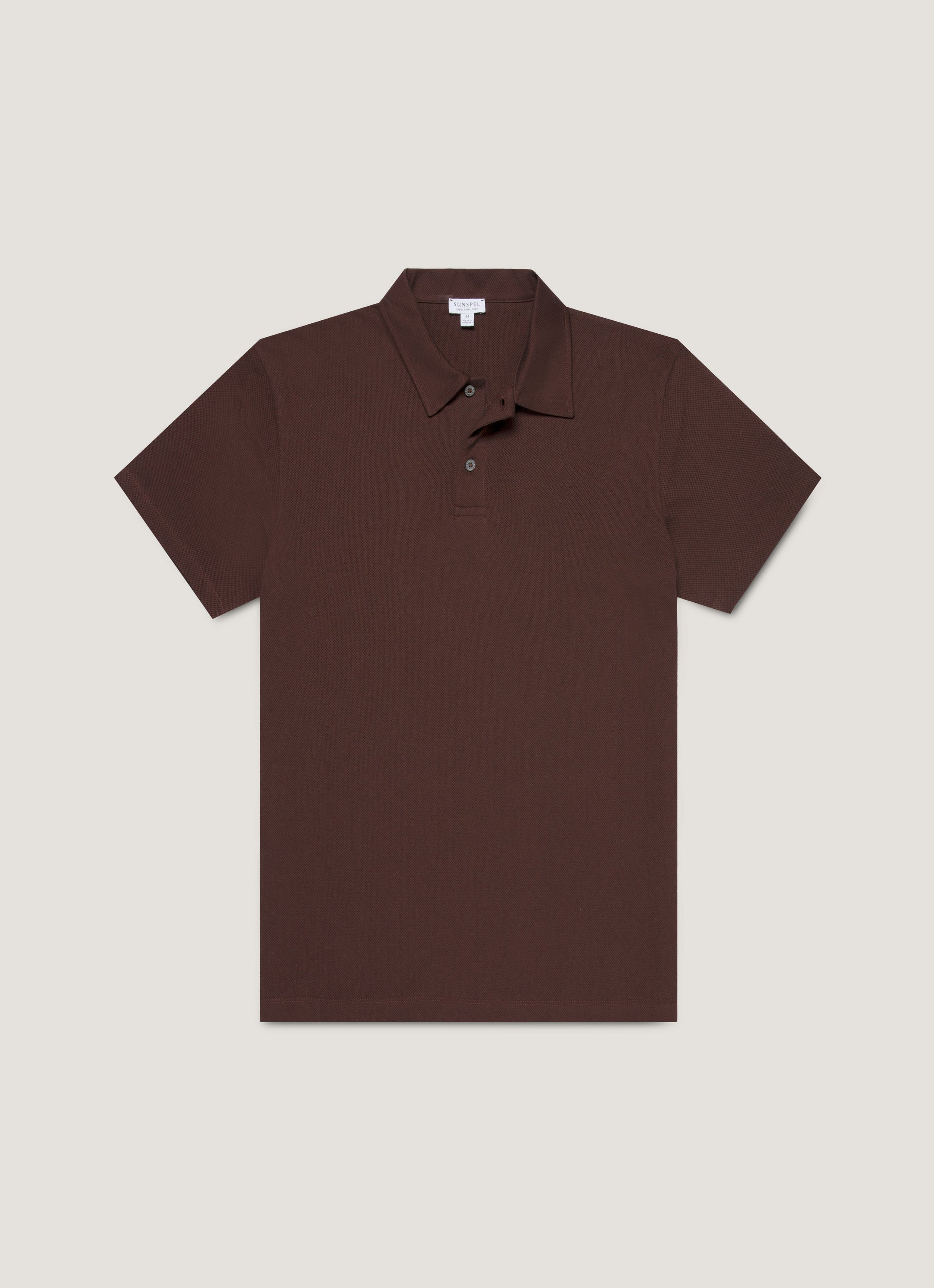 A regular fit version of our iconic Riviera Polo Shirt, crafted from the finest, extra-long staple Supima cotton, traceable to its Californian farm of origin. Lightweight, breathable and exceptionally comfortable, the style was first developed by Sunspel in the 1950s for the French Riviera and was worn for Daniel Craig’s debut performance as James Bond in Casino Royale. This updated version offers a more relaxed silhouette than the original, a streamlined design without a chest pocket, and branded shell buttons. Product Code: MPOL1076-RDEL Fabric & Care - 100% Supima Cotton - Cotton is fully traceable and sustainably sourced from California - Cotton is extra-long staple for durability and comfort - Gentle wash at 30°C with similar colours - Do not tumble dry - Dry cleanable - Made in Portugal Size & Fit - Regular fit - Model is 6'2", chest 38" and wears a size M