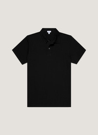 A regular fit version of our iconic Riviera Polo Shirt, crafted from the finest, extra-long staple Supima cotton, traceable to its Californian farm of origin. Lightweight, breathable and exceptionally comfortable, the style was first developed by Sunspel in the 1950s for the French Riviera and was worn for Daniel Craig’s debut performance as James Bond in Casino Royale. This updated version offers a more relaxed silhouette than the original, a streamlined design without a chest pocket, and branded shell buttons. Product Code: MPOL1076-BKAA Fabric & Care - 100% Supima Cotton - Cotton is fully traceable and sustainably sourced from California - Cotton is extra-long staple for durability and comfort - Gentle wash at 30°C with similar colours - Do not tumble dry - Dry cleanable - Made in Portugal Size & Fit - Regular fit - Model is 6'2", chest 38" and wears a size M