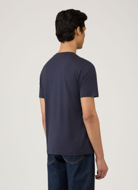 Originally designed for Daniel Craig in Casino Royale, the Riviera T-shirt is crafted in a luxurious midweight cotton fabric. Its smooth, durable feel and slight extra weight makes it the ideal solution for transitioning between the seasons. Product Code: MTSH0007S-BUAA Fabric & Care - 100% Supima Cotton - Cotton is sustainably sourced from California - Cotton is extra-long staple for durability and comfort - Gentle wash at 30°C - Do not tumble dry - Dry cleanable - Made in Portugal Size & Fit - Slim fit - Cut with the same fit as the Classic T-shirt across the chest but the midweight fabric will make it feel more fitted by comparison - Model is 6'1", chest 39" and wears a size M