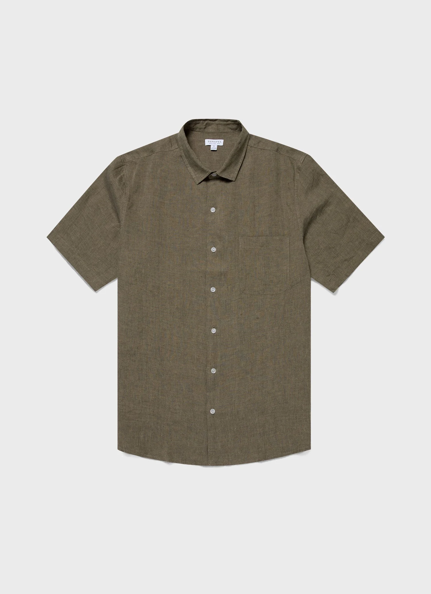 The cool breathable feel of linen makes this the ideal summer shirt. The Italian linen fabric uses an extra fine fibre for a softer handle than traditional linen, and it's been given an extra soft wash for a casual summer look. Single pocket, regular fit. Wear on its own or open over a T-shirt. Product code: MSHT2039-GNID Fabric & Care - 100% Linen - Fabric by Canclini, Italy - Gentle wash at 40°C with similar colours - Do not tumble dry - Dry cleanable - Made in Portugal Size & Fit - Click here to view size chart - Fits true to size - take your normal size - Relaxed fit - Model is 6'2", chest 38" and wears a size M