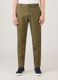 A slim-fit chino with a mid-to-low rise and a classic flat-front design. Crafted from lightweight Italian cotton with a touch of stretch for added comfort, and garment dyed for a soft, casual feel. Finished with a tailored waistband, button closure, zip fly, and single welt back pockets. Product Code: MTRS3102-GNGY Fabric & Care - 98% Cotton, 2% Elastane - Gentle wash at 40°C - Wash separately - Do not tumble dry - Dry cleanable - Made in Portugal Size & Fit - Slim fit - Flat front - Straight leg - Tailored waist - Model is 6'2" and wears a size 32