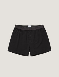A classic one-button boxer short. Cut with a mid-rise, it is crafted from a long-staple cotton jersey that’s luxuriously soft and lightweight. Legs have a clean finish for ease of movement. Product Code: MSHR4413-BKAA Fabric & Care - 100% Cotton - Gentle wash at 40°C - Do not tumble dry - Dry cleanable - Made in Portugal Size & Fit - Relaxed fit - One-button fly - Flat locked seams for added comfort - Elasticated waist - Model is 6'2" and wears a size M